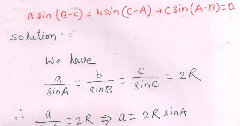 Geeksnetworks In A Triangle Abc Prove That Asin B C Bsin C A Csin A B 0