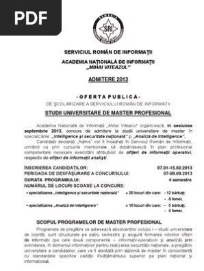 Academia Nationala De Informatii Subiect Admitere Master Profesional Gen5yo8kop4o