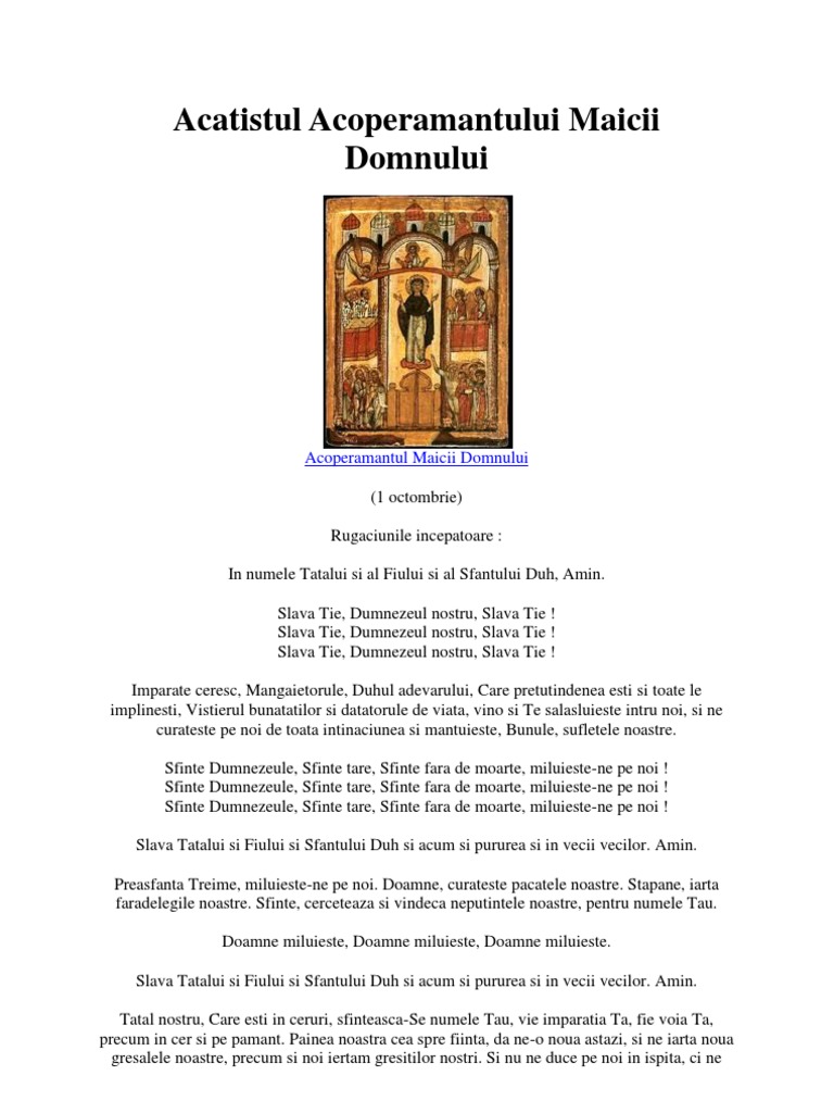 Acatistul Acoperamantul Maicii Domnului Pagina Dedicata Cinstirii Maicutei Domnului