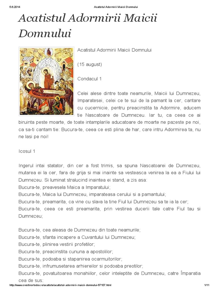 Acatistul Adormirii Maicii Domnului Crestinortodox Ro