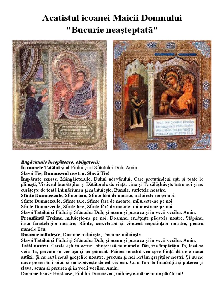 Acatist Folositor Pentru Suflet Acatistul Maicii Domnului Bucurie Neasteptata Pagina Dedicata Cinstirii Maicutei Domnului