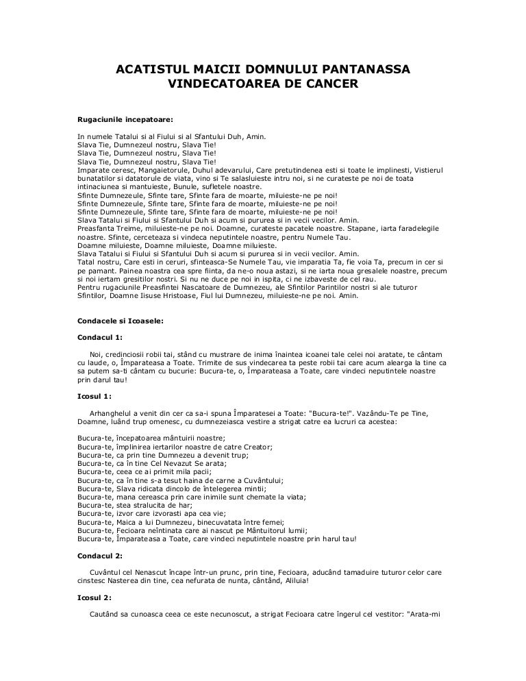 Acatistul Maicii Domnului Vindecatoare De Cancer Pantanassa