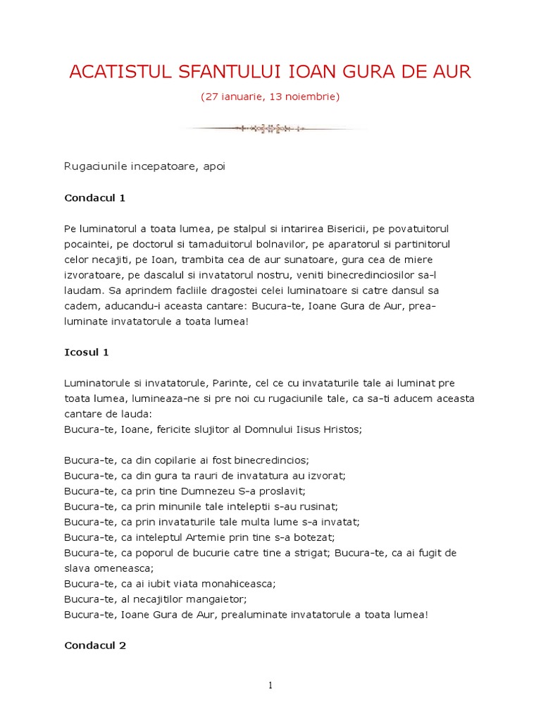 Rugaciune Ortodoxa Acatistul Sfantului Ioan Gura De Aur