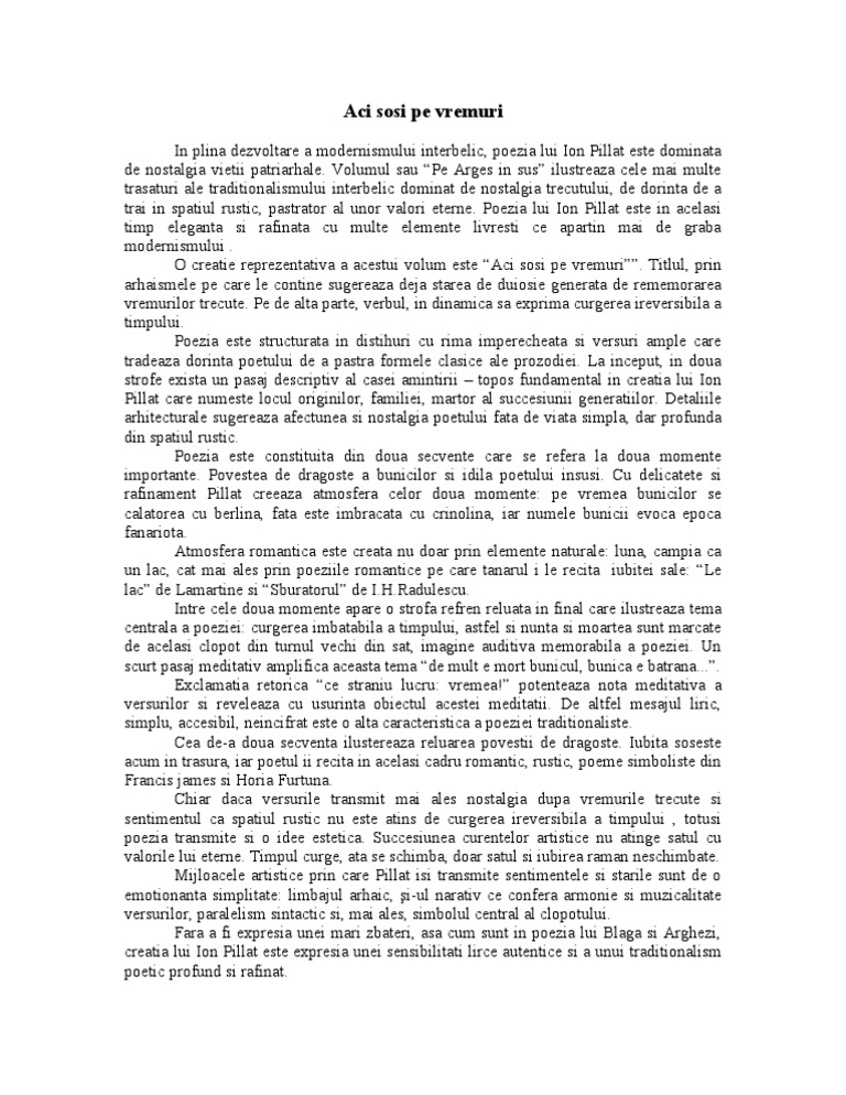 Comentariu Literar Aci Sosi Pe Vremuri Ion Pillat Alina S