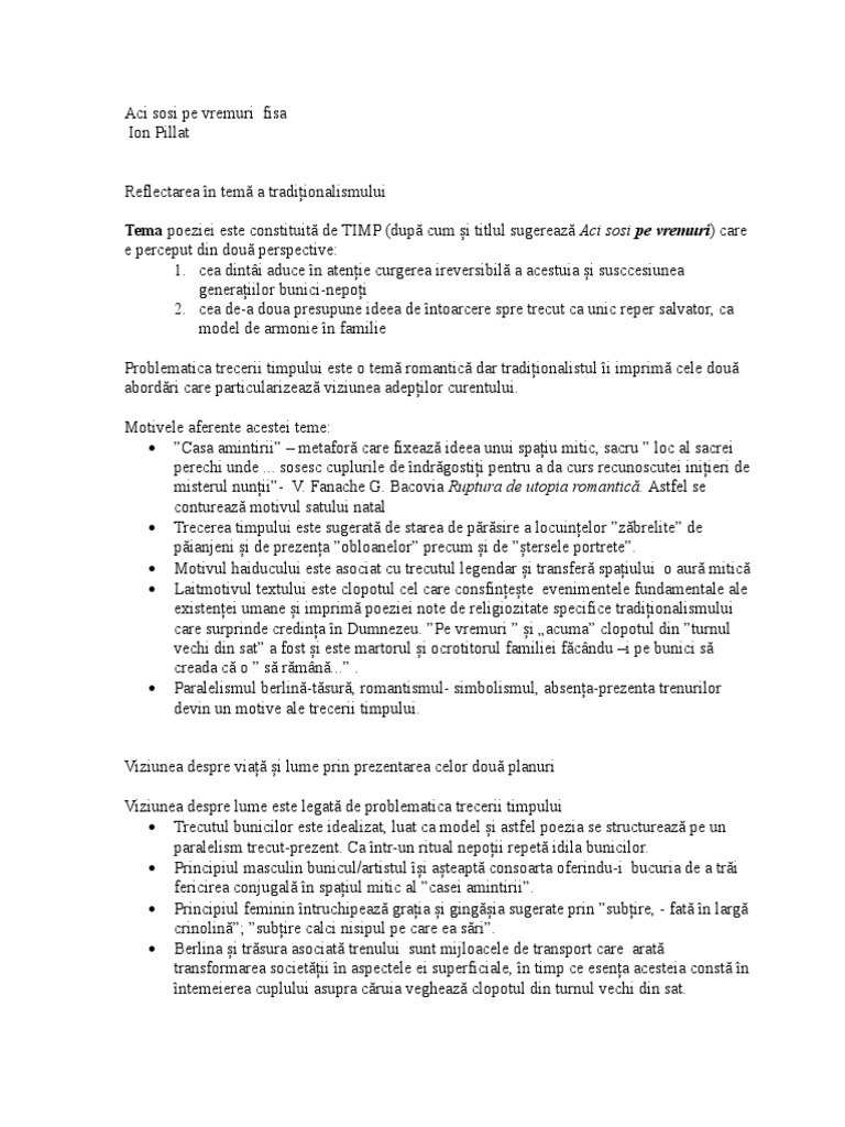 Comentariu Literar Aci Sosi Pe Vremuri Ion Pillat Alina S