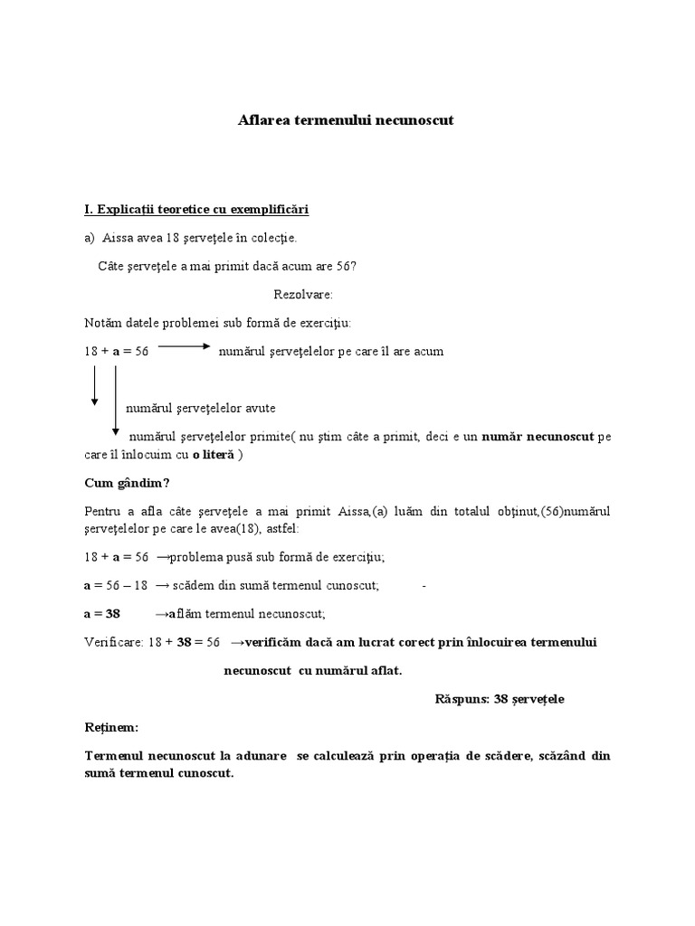 Aflarea Termenului Necunoscut Clasa 1