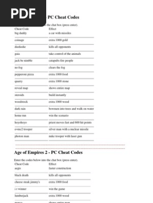 Cheat Codes Age Of Empires Ii Age Of Empires Series Wiki Fandom