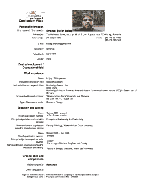 Fillable Online Bio Uaic Europass Curriculum Vitae Alexandru Ioan Cuza University Bio Uaic Fax Email Print Pdffiller