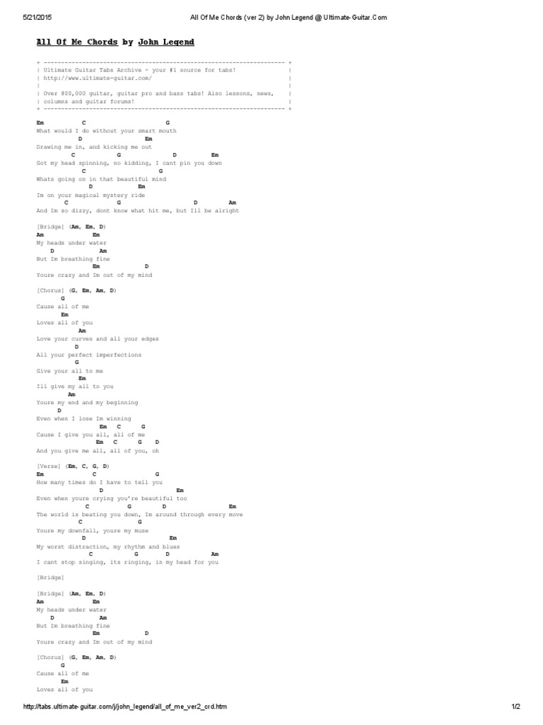 All Of Me Chords Ver 2 By John Legend Ultimate Guitar Pdf