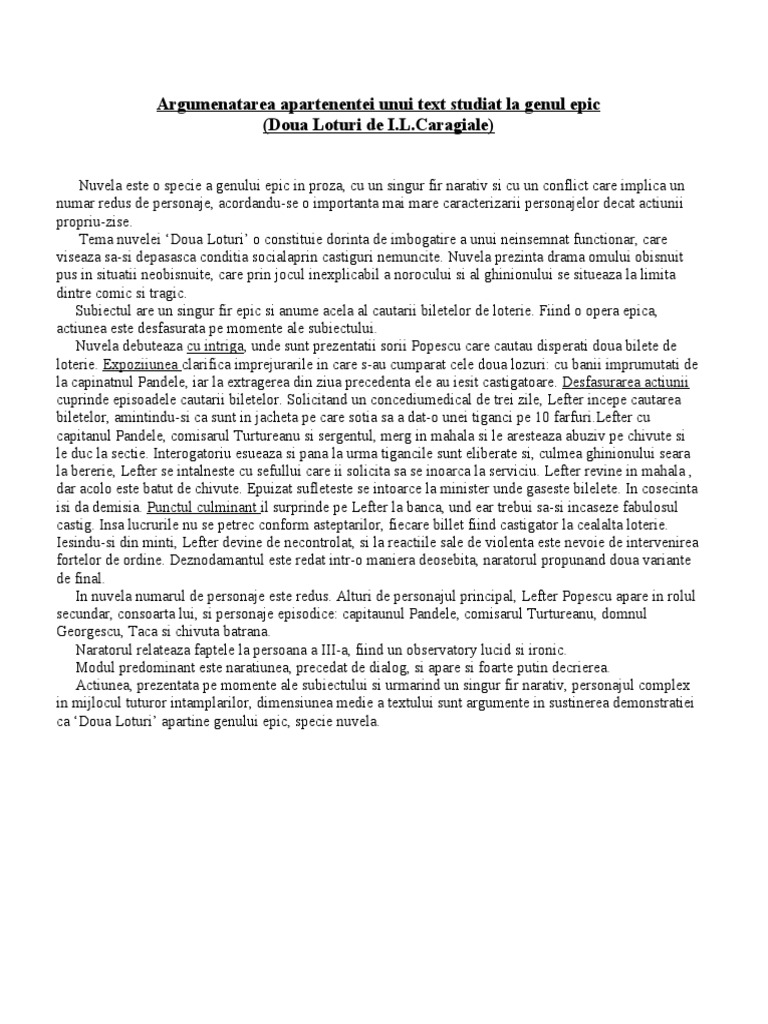 Model de argumentare a apartenenei unui text la genul epic.