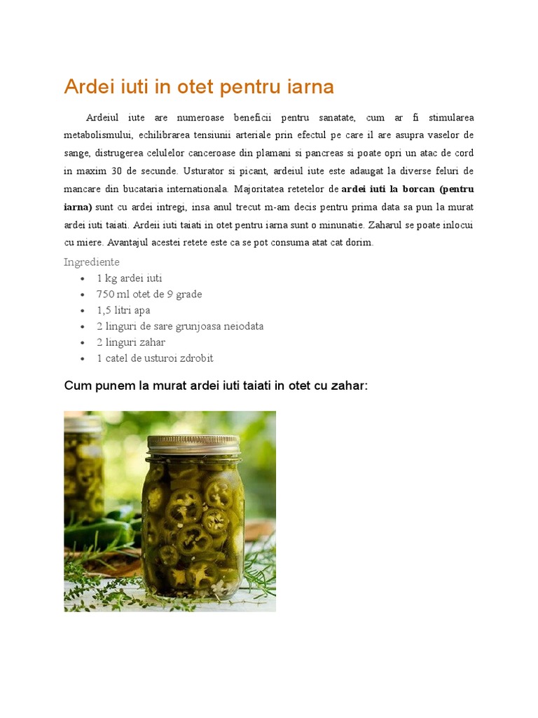 Ardei Iuti In Otet Pentru Iarna Doc
