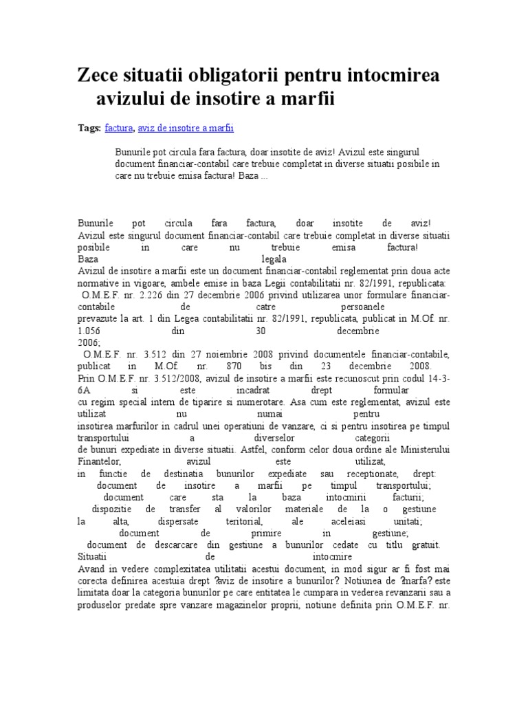 Aviz De Insotire A Marfii Contabilitate Fiscalitate Monografii Contabile