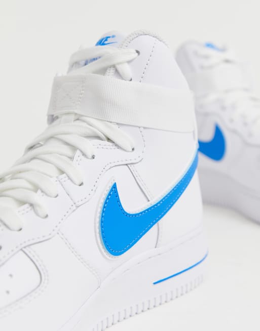 Nike Air Force 1 07 3 High Sneakers In White With Blue Swoosh At4141 102 Asos