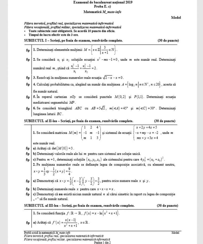 Bacalaureat 2019 Modele De Subiecte La Matematică Sparknews Ro