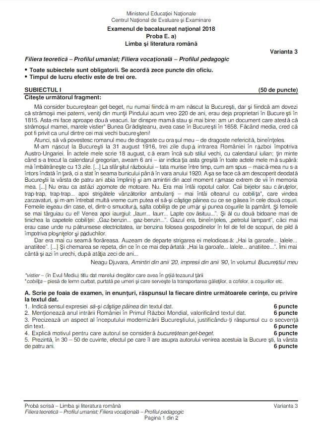 Edu Ro Bac 2019 Limba Romană Din 01 07 2019 Subiecte și Bareme Proba E A Uman și Real Jitaruionelblog Pregatire Bac Si Evaluarea Nationala 2020 La Matematica Si Alte Materii Materiale Lectii Formule Exercitii