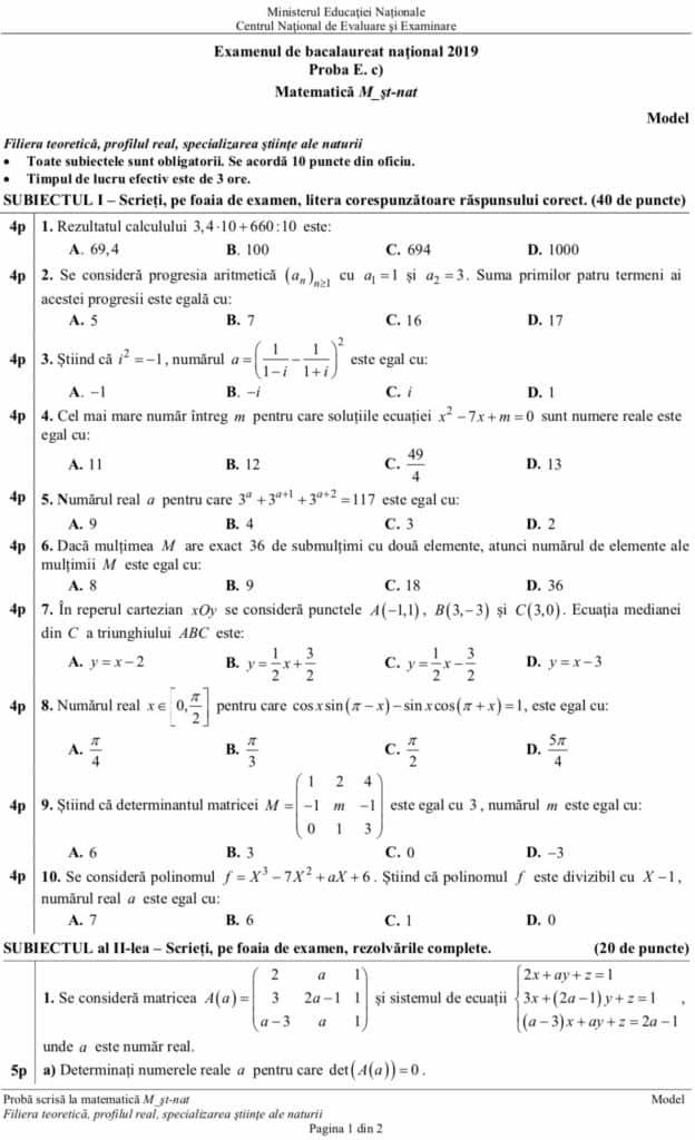 Edu Ro Simulare Bac 20 Martie 2019 Xi Xii Matematica Subiecte Si Bareme Mate Info Stiinte Tehnologic Pedagogic Proba E C Clasa A 11 A Si Clasa A 12 A Jitaruionelblog Pregatire Bac Si Evaluarea Nationala