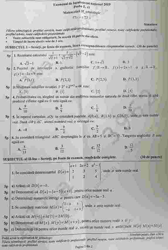 Update Simulare Bac 2019 Matematică Avem Subiectele La Clasa A Xii A