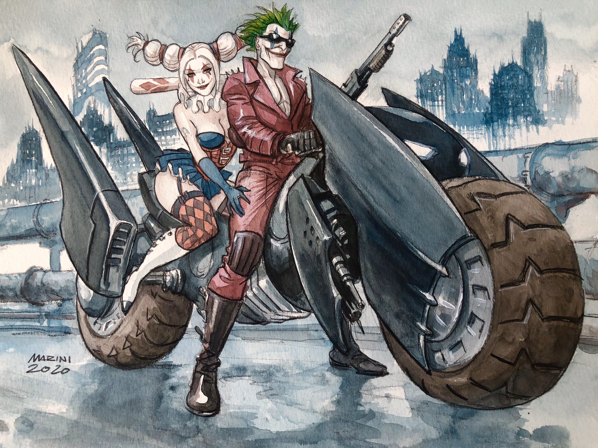 Enrico Marini On Twitter Harley Quinn Joker On The Batbike From Batman The Dark Prince Charming Commission