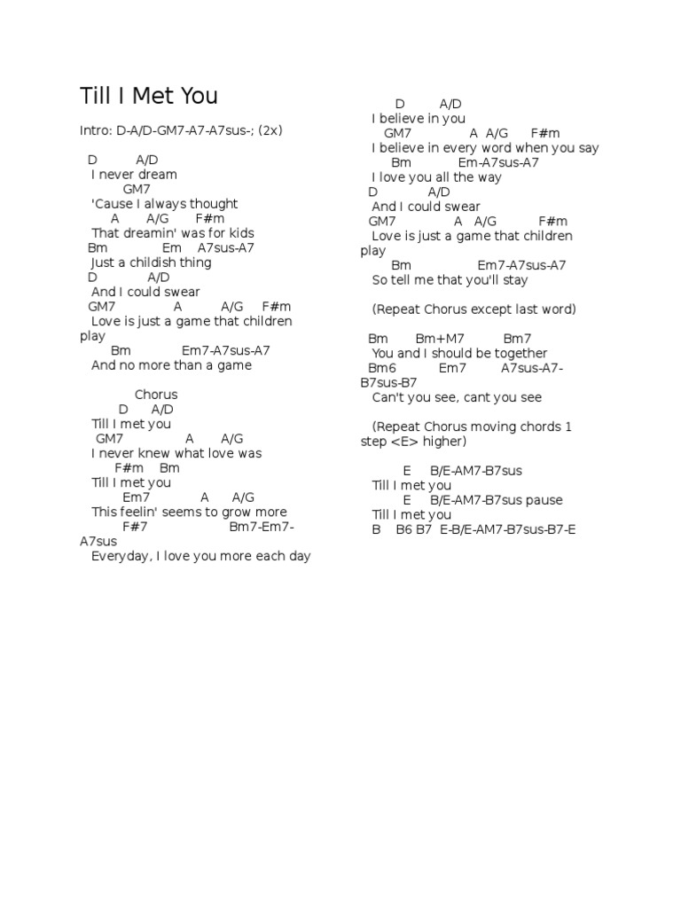 Till I Met You Song Structure Musical Forms