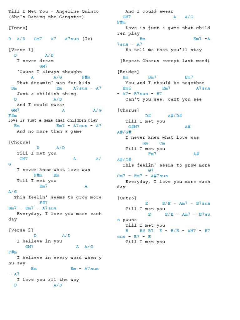 Till I Met You Angeline Quinto Guitar Chords W Lyrics Guitaroke Karaoke Youtube