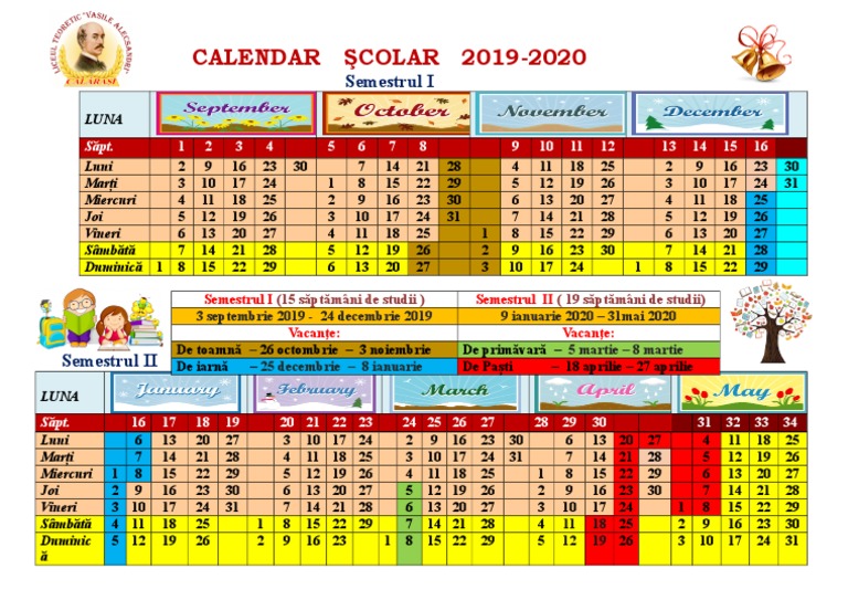 Calendar Cu Anul Scolar 2019 2020 De A Valma