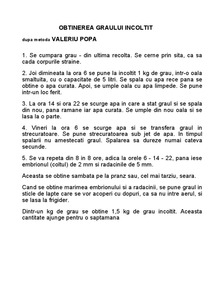 Obtinerea Graului Incoltit Valeriu Popa Dupa Metoda
