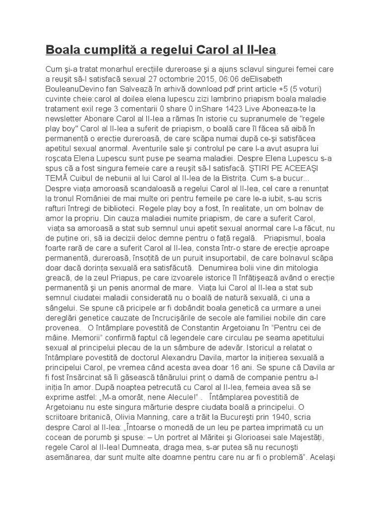 Boala Cumplită A Regelui Carol Al Ii Lea Al Romaniei Cum Si A Tratat Monarhul Erecţiile